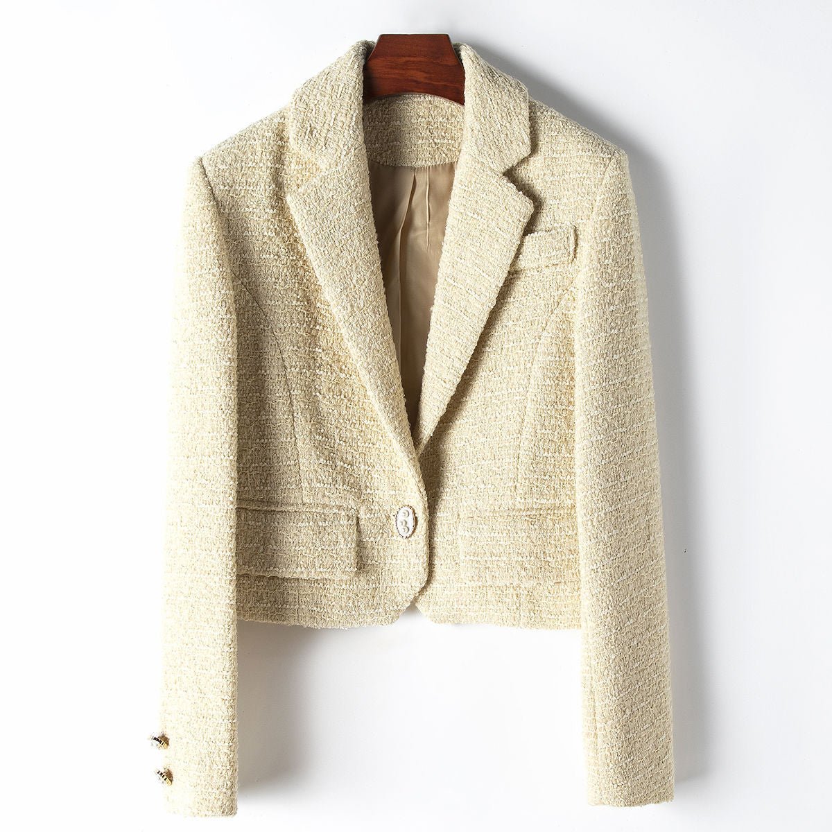 Imagine stepping into a world where classic elegance meets contemporary style, enveloping you in a garment that tells a story of grace and individuality. The Nostalgic Grace Blazer by Vivian Prescott is crafted from a beautifully textured fabric that captures the essence of vintage style while providing a contemporary twist.